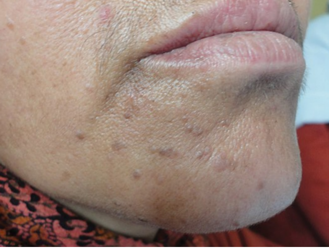这个小肉粒一般是丝状疣。网上有一种说法,丝状疣是因为HPV感染引起的,确实是这样吗?长了这个东西该怎么办?